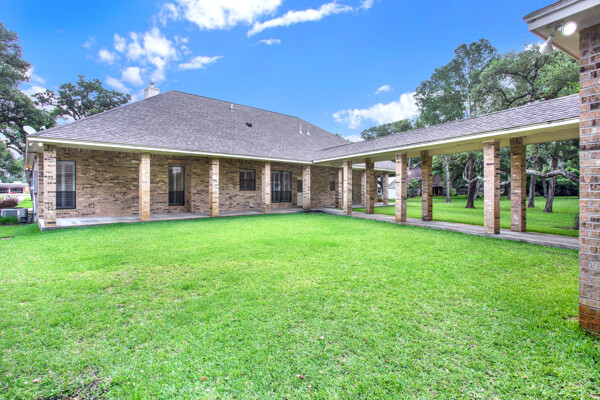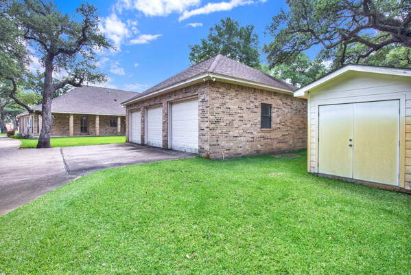 The detached triple car garage includes extra space for tools or hobbies, perfect for organizing.