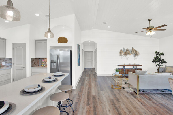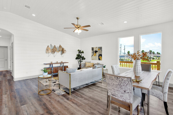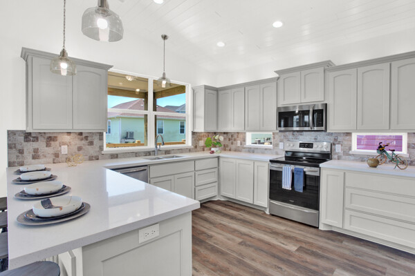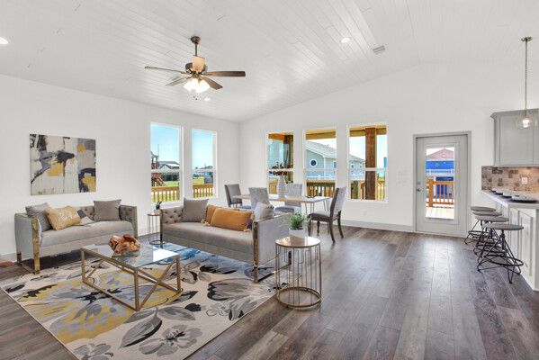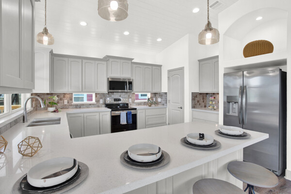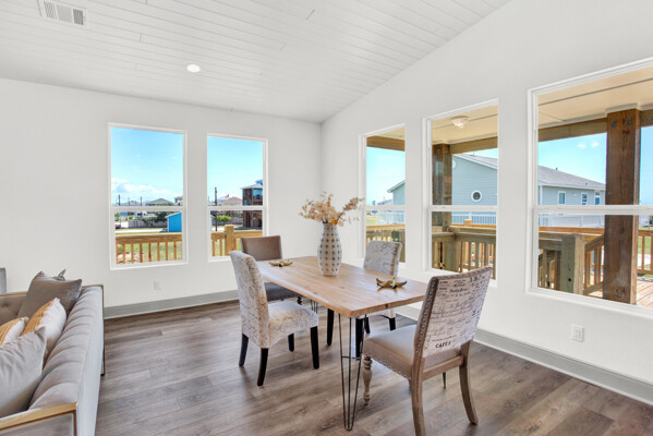 BRAND NEW BEACH HOME with great Gulf views within a few steps directly onto Crystal Beach! This fabulous 3/2 home has vaulted pine tongue and groove ceilings, shiplap walls, custom cabinetry, vinyl plank flooring, granite and quartz countertops, frameless glass shower w/double vanities, stainless silver appliances, tray lighted ceiling in the primary bedroom, extended concrete slab under the home with louvered sand shower, 220V outlets on deck for a lift, 2 Bay 8ft louvered garage w/garage door/bar pass through with quartz countertops, 10ft covered front deck and so much more. Please see the attached documents for the builder's complete list of home features, floor plans, survey, and flood certificate. The perfect investment home for short-term rentals! This home is less than a mile from local stores and restaurants and a very short walk to the beach entrance making this a very desirable location.