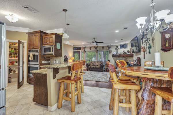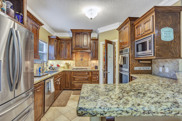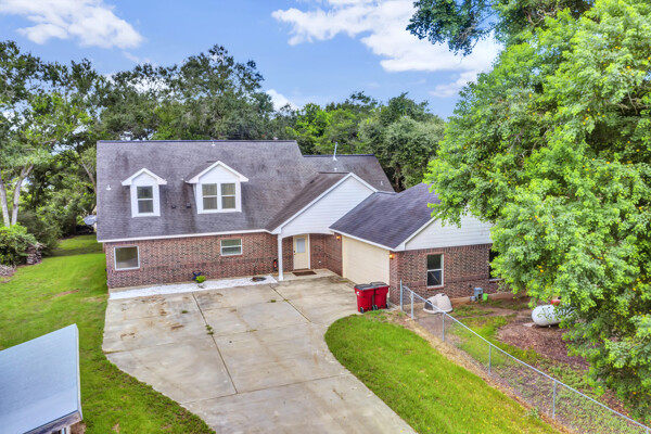 Beautiful riverfront property with lots of land and mature landscaping. Water access and private fishing pier. The large open kitchen has double ovens, granite counter tops, and plenty of counter space. The cozy family room features a fireplace and stunning views of the water. Gameroom on the second floor is a very versatile space. Gorgeous views from the peaceful back porch. Part of the yard is fully fenced. You will love the beautiful home and peace and quiet this property has to offer.